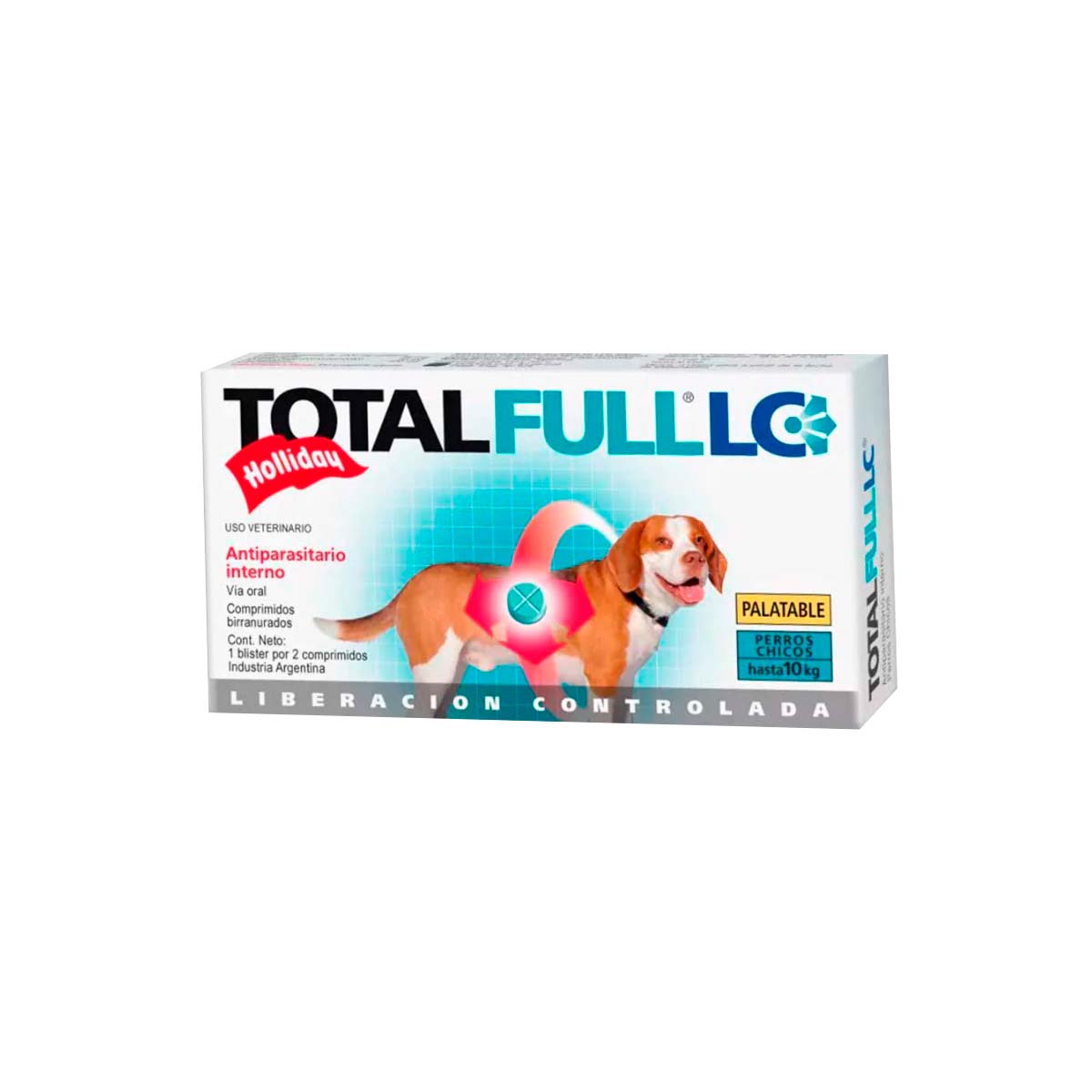 Total Full LC perros chicos y medianos: Envase conteniendo 1 blister por 2 comprimidos birranurados palatables para perros hasta 10 kg y 20 kg respectivamente.